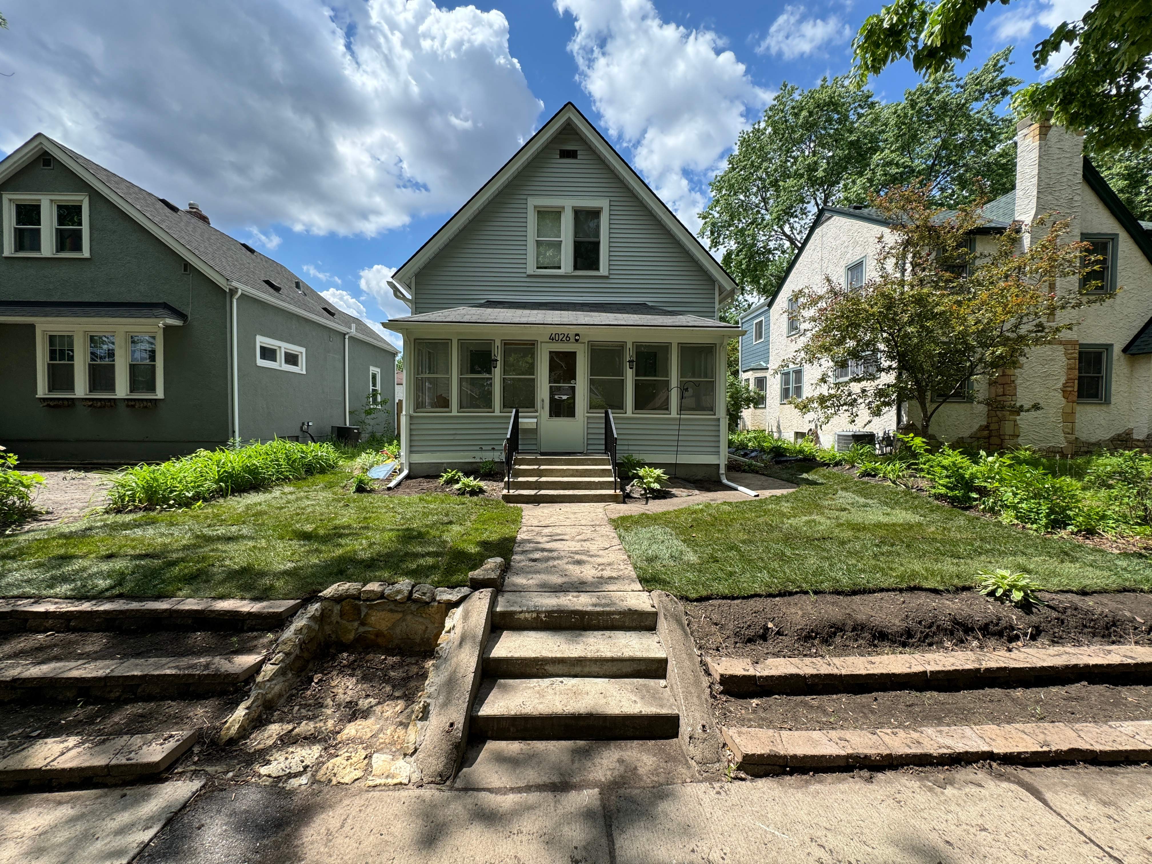 Sota landscapingThis client first connected with us after seeing our team working on a neighboring property and decided to have us complete a similar transformation at her home. Her front yard was covered in river rock, which we fully removed to make way for a healthier, more functional landscape. Our team then brought in fresh topsoil, properly graded the area, and installed new sod to create a cleaner look.
