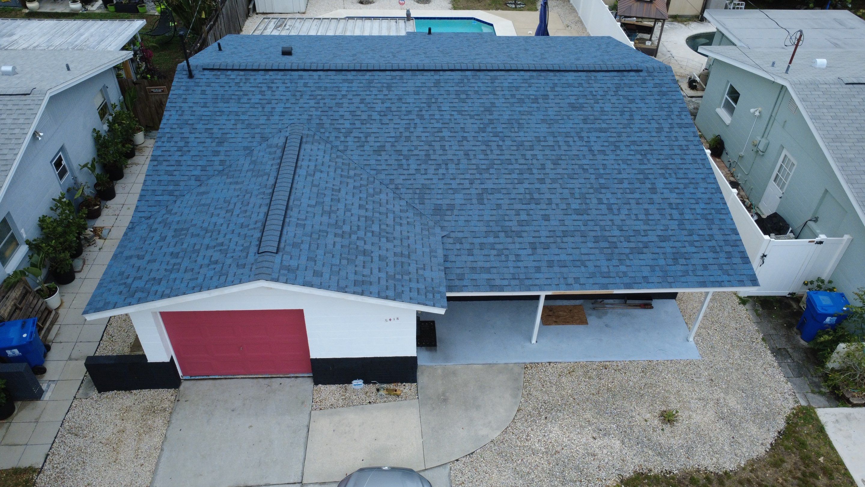 Not all heroes wear capes—some wear Harbor Blue 🦸♂️ This St. Petersburg, FL home now shines with Owens Corning Duration shingles, built to handle wind, weather, and nosy neighbors’ envy. Our expert roofers deliver real results, no gimmicks. Need a roofing company that shows up and shows off? Let’s inspect your roof—free! 🏠