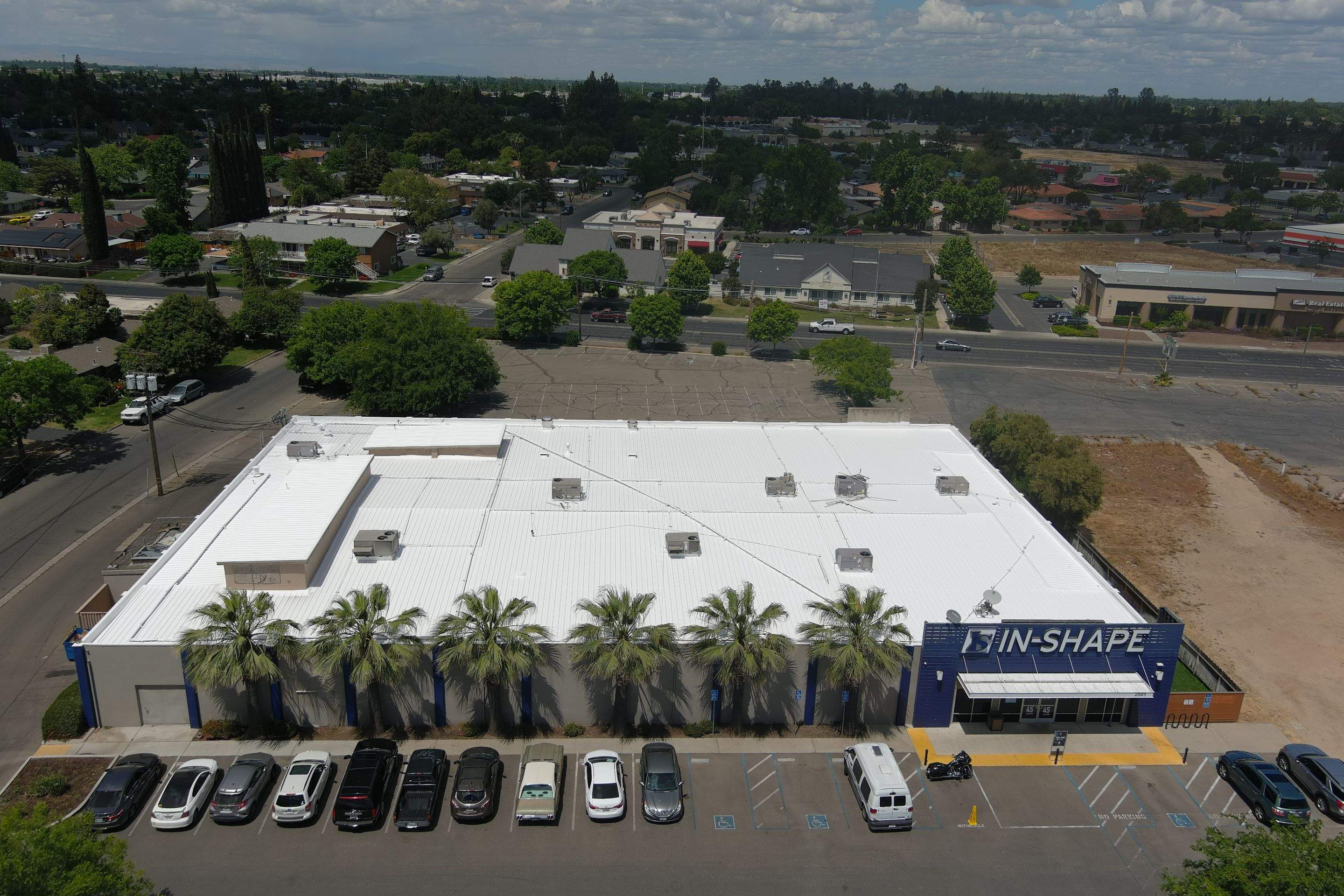 Conklin Benchmark/ PUMA XL acrylic coatings over metal and foam, Metal roof restoration on commercial roof