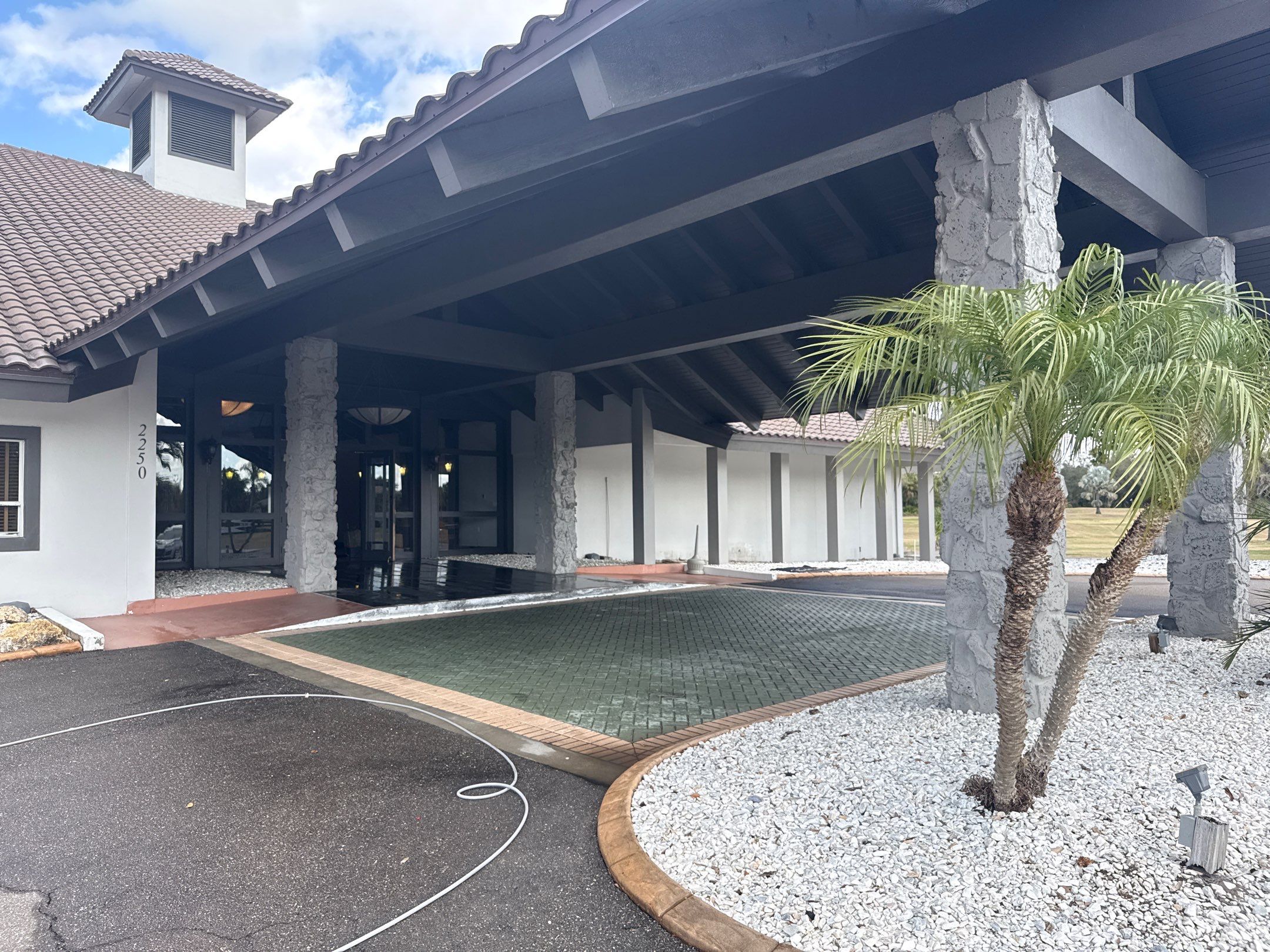 This commercial project at The Club at River Wilderness in Parrish, FL focused on restoring the main overhang entrance, front doors, and windows where guests arrive and are dropped off. The entrance area had heavy buildup from spiders, webs, dirt dauber and wasp nests, bugs, and grime, which made the entryway look neglected. Using a careful soft wash and low-pressure cleaning process, we safely removed the buildup and restored a clean, welcoming appearance to this high-traffic drop-off area. šø Check out the before & after results below ā the difference is night and day. Need Commercial Pressure Washing in Parrish, FL? Call (813) 421-2790 or request a free quote to keep your business looking professional and inviting.