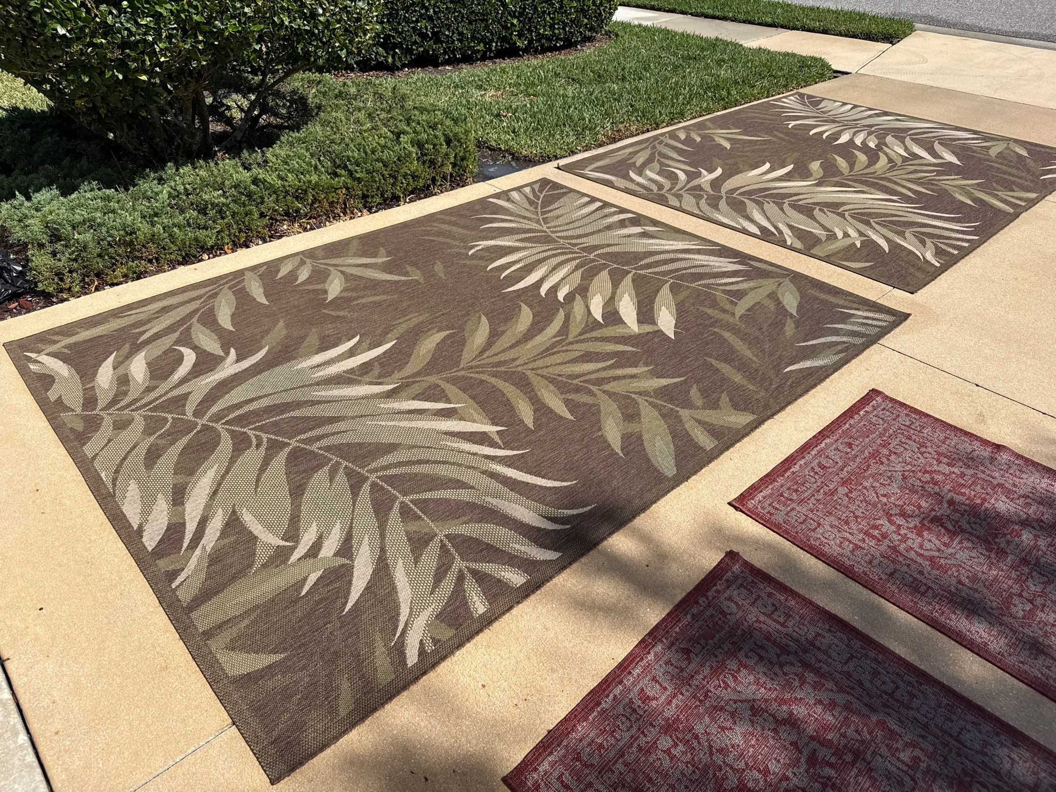 Sunshine AquaWash completed an outdoor rug cleaning project in the Forest Creek Community of Parrish, FL. The homeowner had four outdoor rugs that had accumulated dirt, grime, and algae from Florida’s humid conditions. We placed the rugs on the driveway for proper cleaning and drying, then used our soaps and pressure washer to safely lift stains, restore color, and brighten the fabric. Each rug came out looking refreshed, clean, and ready for use again. If your outdoor rugs are looking dull or weathered, Sunshine AquaWash can bring them back to life with our professional cleaning process.
