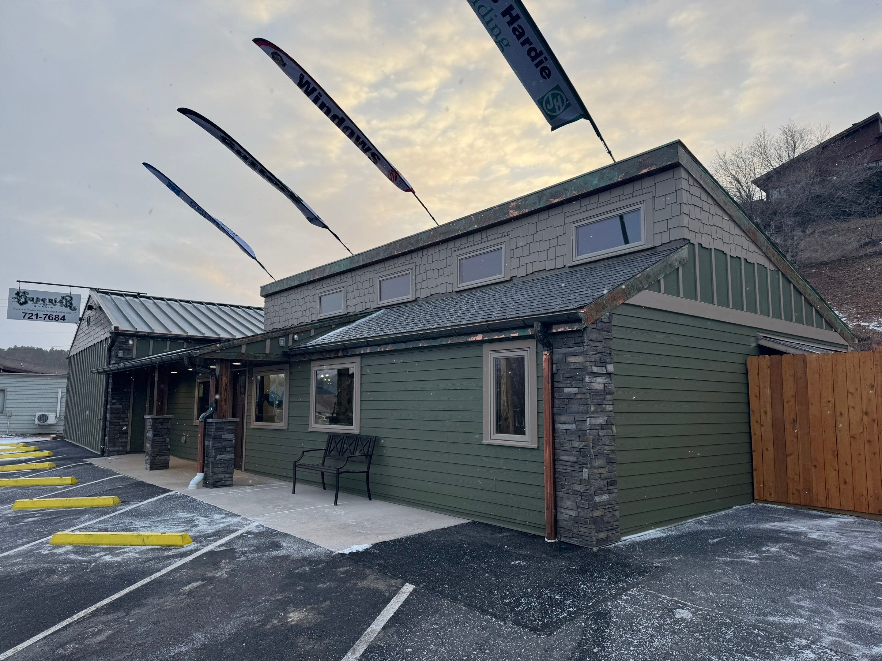 At Superior Siding, we believe in showcasing the same high standards we bring to every home transformation—starting with our own west side office. Our remodel was designed to reflect our commitment to durability, craftsmanship, and cutting-edge materials. We chose James Hardie siding for its unmatched fire resistance, longevity, and ability to withstand the elements, making it the perfect choice for our location in Rapid City. This project highlights what we do best—expert installation, superior products, and attention to detail. Stop by our west side office to see the transformation in person and discover how we can help bring your vision to life!