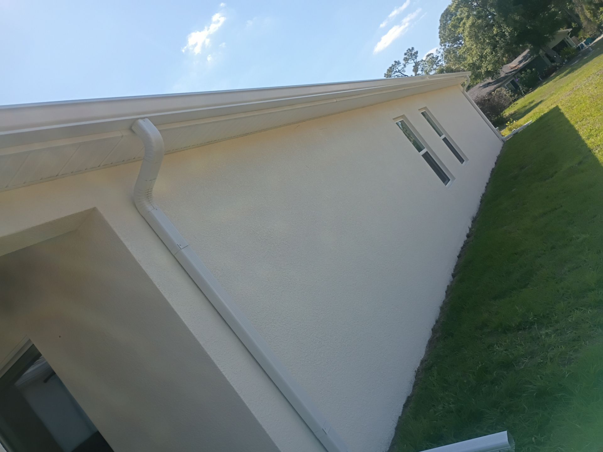 Completed installation of 6-inch K-style white seamless gutters with matching downspouts in North Port. The system was custom-fabricated on-site to ensure a precise fit and a clean, uniform appearance along the roofline. The seamless design minimizes leaks, while the 6-inch size provides increased water capacity—ideal for handling Florida’s heavy rain. Properly placed downspouts ensure efficient drainage, directing water safely away from the home to protect the foundation, siding, and landscaping. This installation delivers a durable, low-maintenance, and visually appealing solution built to withstand harsh weather conditions and provide long-lasting performance.