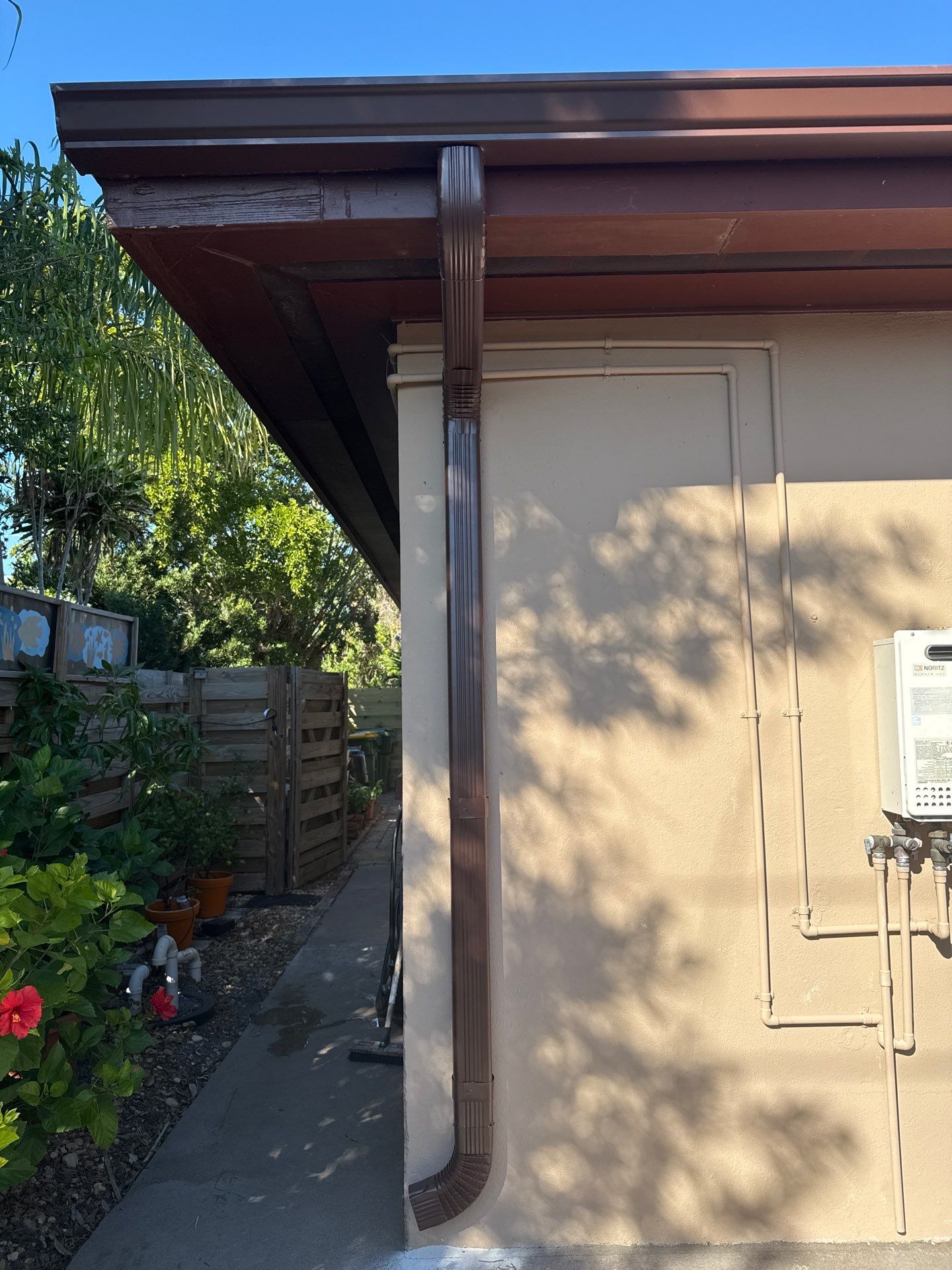 Earth-tone gutters blend perfectly with warm exterior colors, offering long-lasting durability.