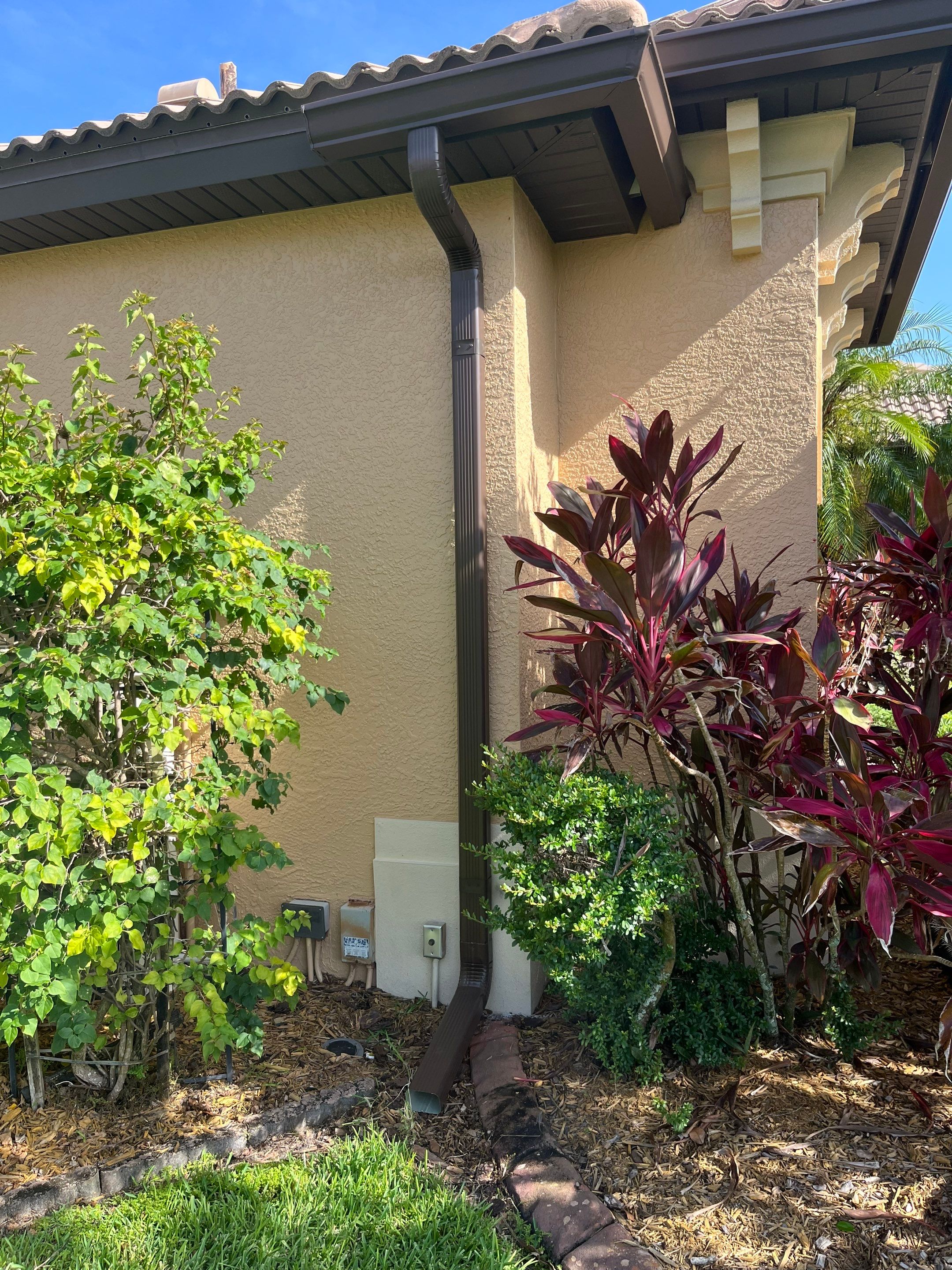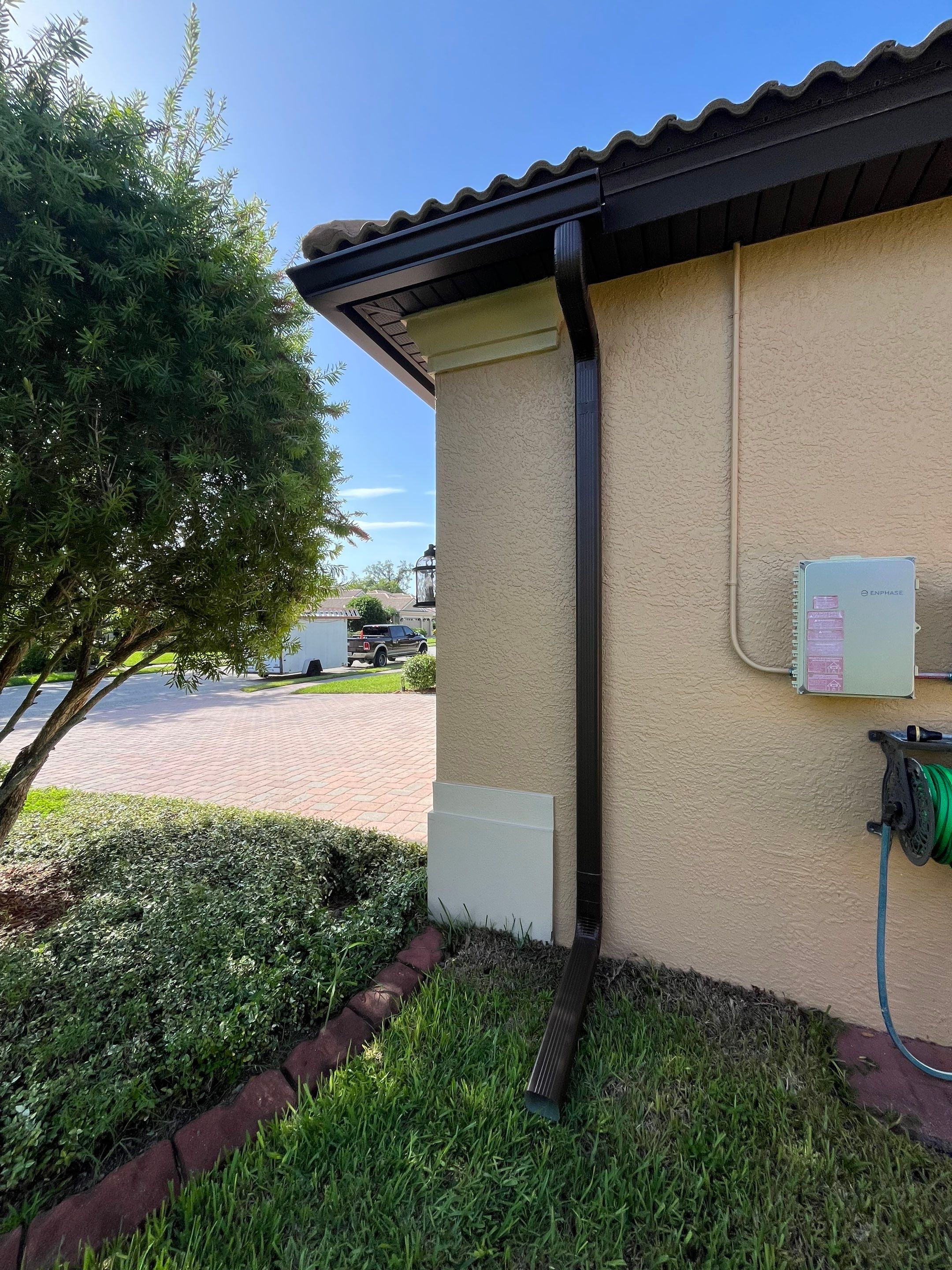 downspouts, 6 Inch Seamless Gutters, Musket Brown Seamless Gutters, Downspouts
