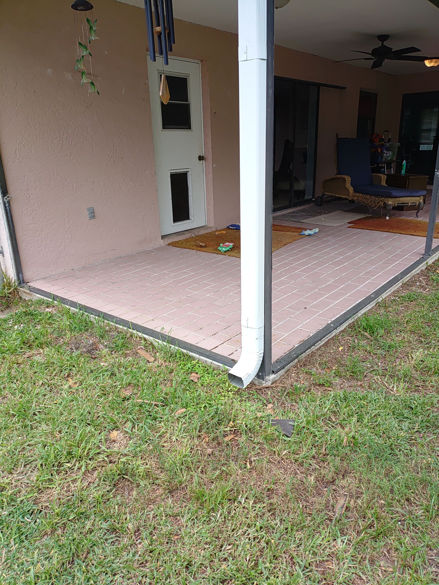 Gutter replacement completed in Cape Coral, FL using durable white downspouts for improved drainage and a clean, finished look. The updated system directs rainwater safely away from the home, helping protect the foundation, walls, and landscaping while enhancing curb appeal.