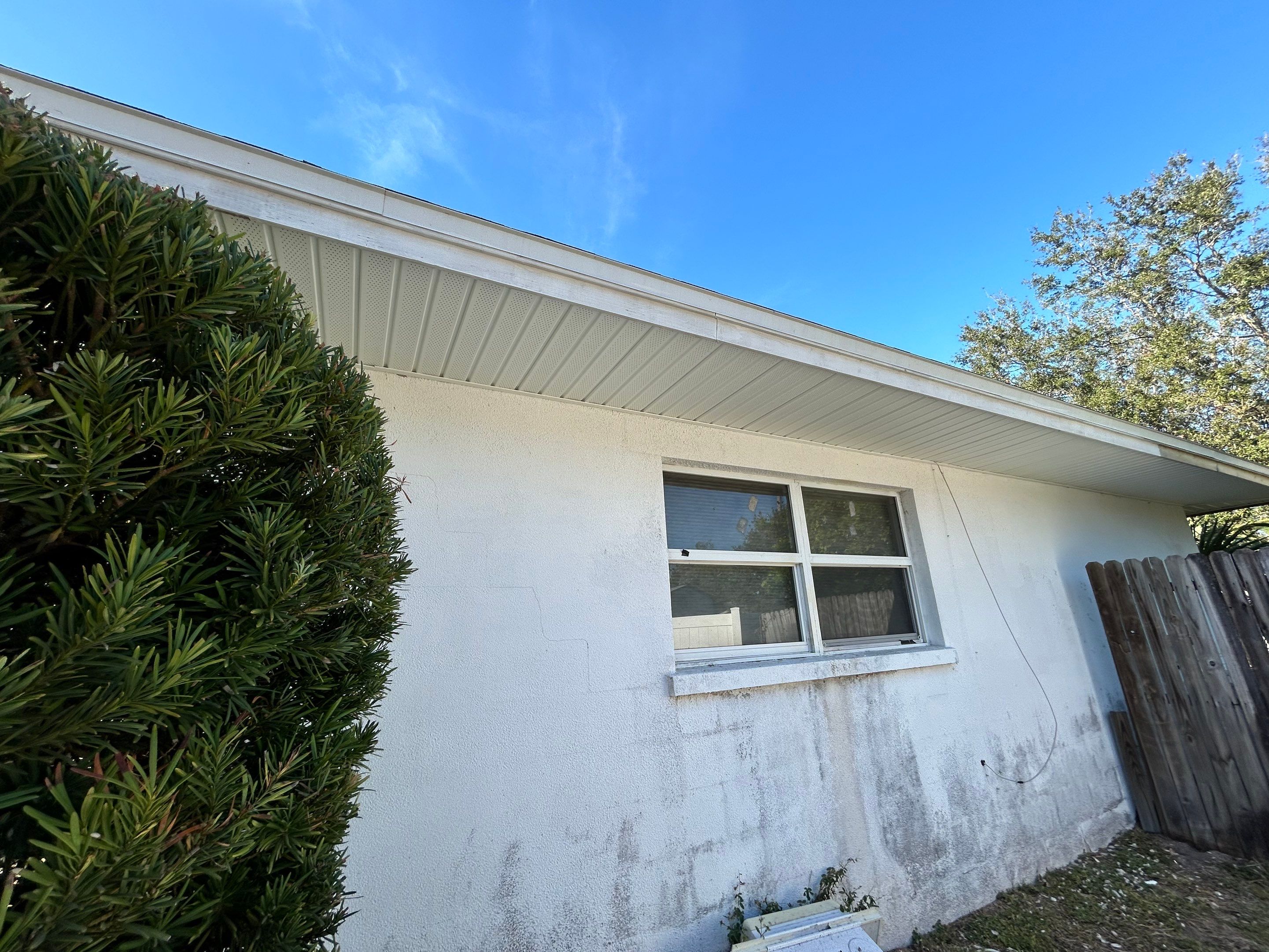 gutter installation, White Soffit, Replace gutter, Vinyl Soffit