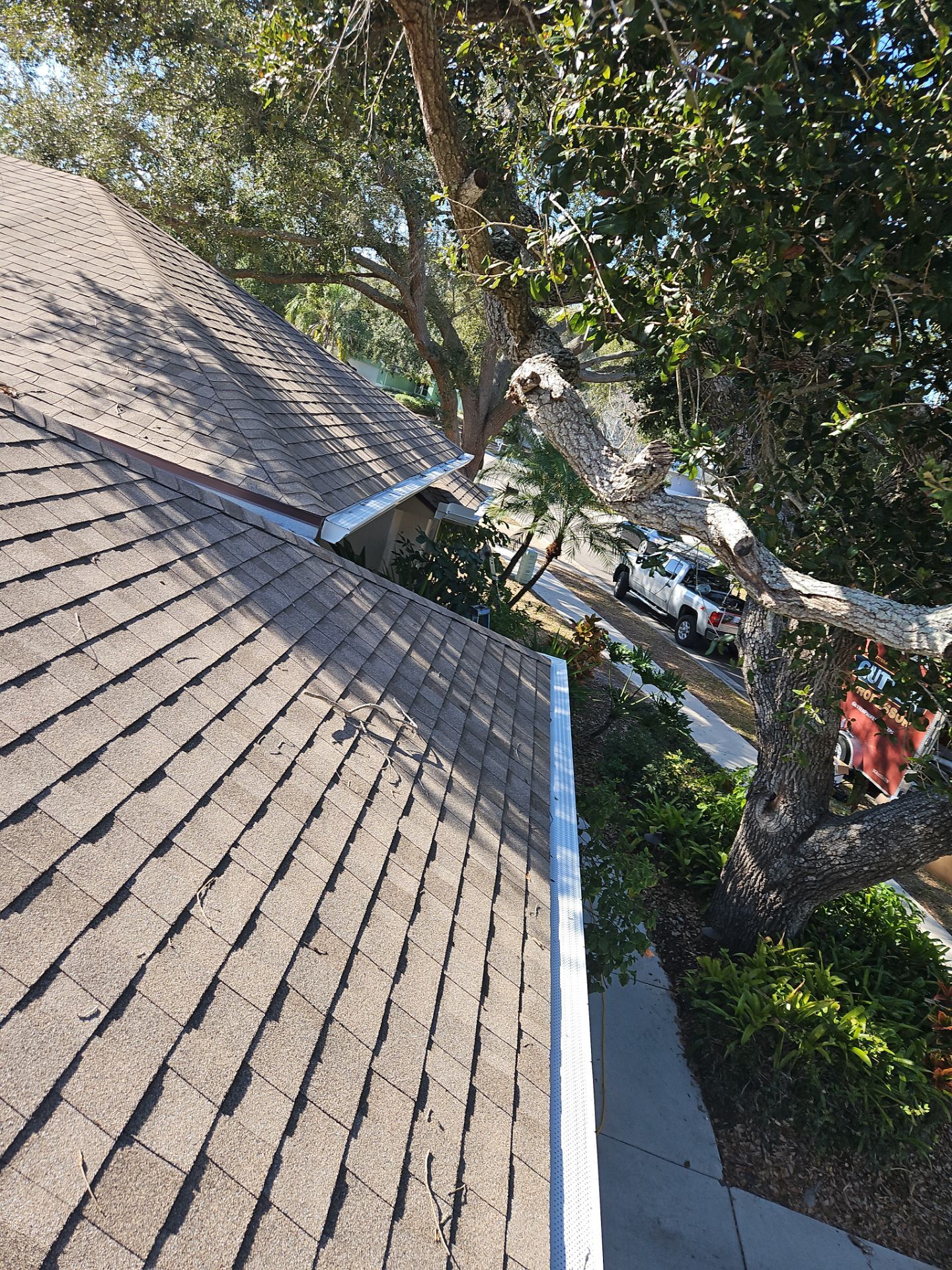 Seamless aluminum gutter installation completed in Sarasota, FL using 6-inch seamless gutters for improved drainage and durability. The system is designed to handle heavy rainfall while providing a clean, leak-resistant finish that protects the home’s foundation and exterior.