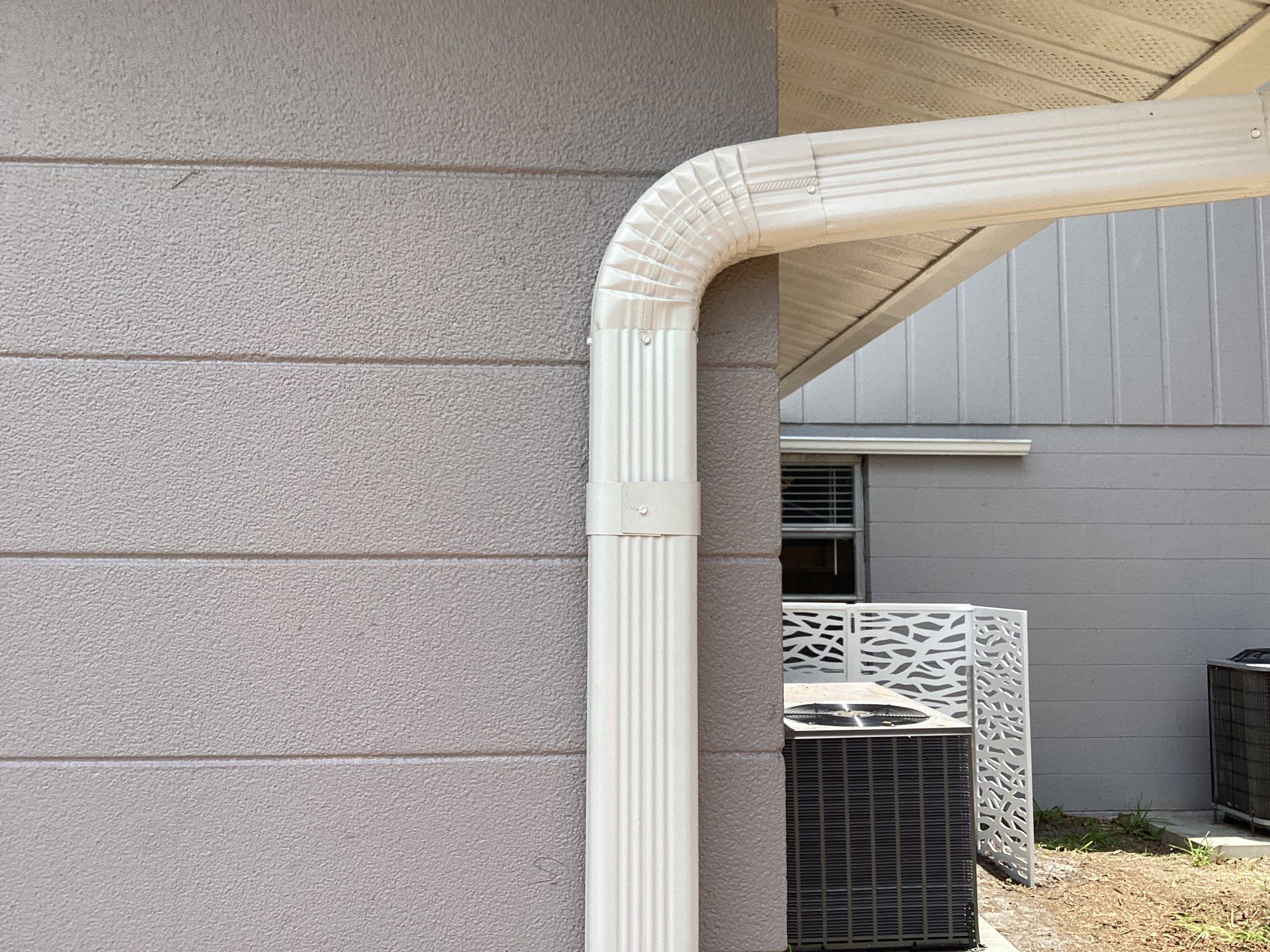 White K Style Seamless Gutters using 3X4 Elbow Downspout in Sarasota FL