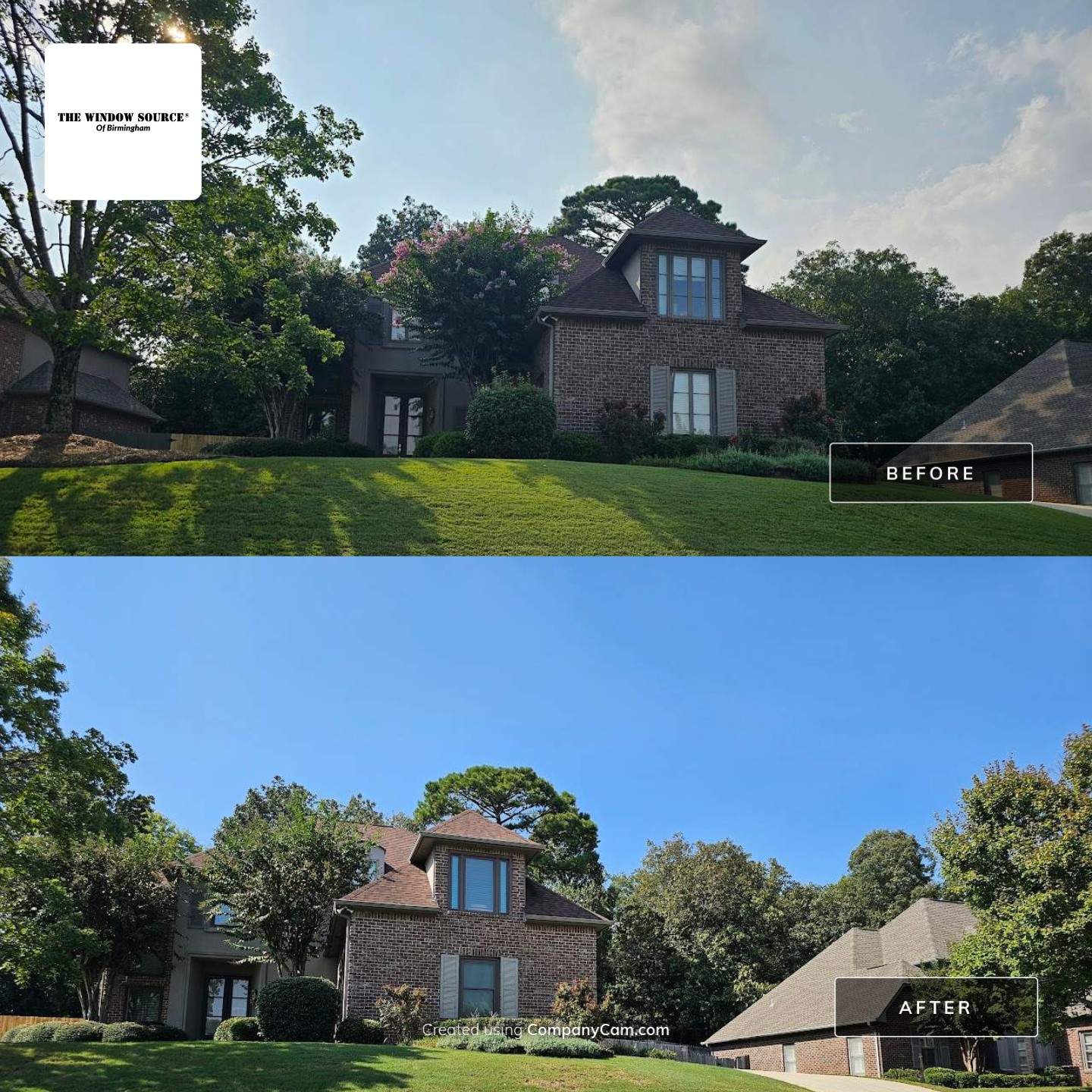 White interior, Vinyl Windows, American Terra, Double Hung, Picture Window, Replacement Windows, Brick Home