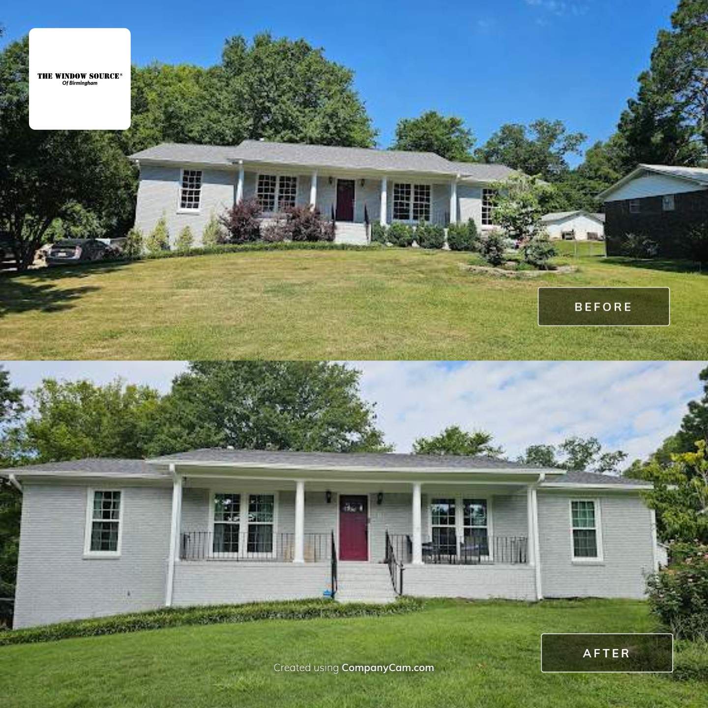 Vinyl Windows, White exterior, White interior, Contour Grids, Replacement Windows, Brick Home