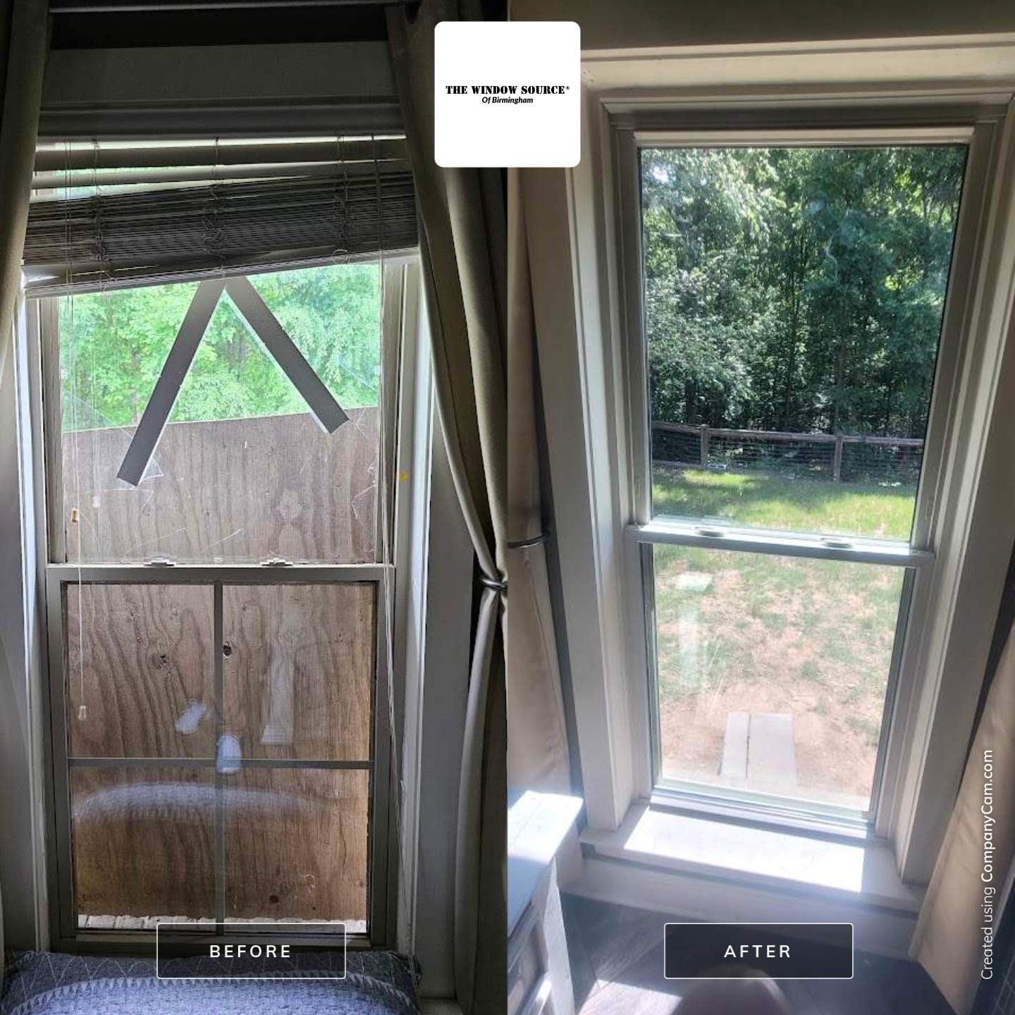 White interior, Beige exterior, Double Hung, Vinyl Windows, Replacement Windows, Brick Home