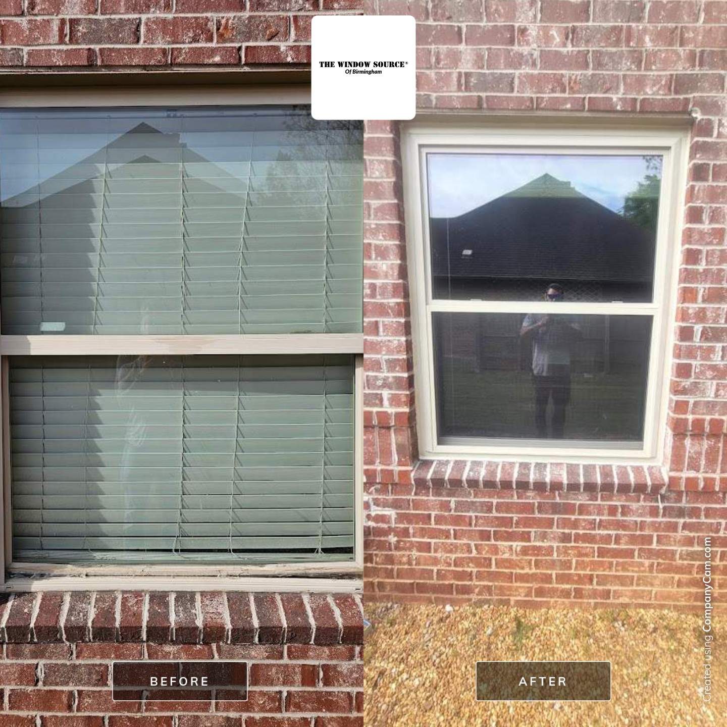Beige exterior, White interior, Double Hung, Replacement Windows, Brick Home, Vinyl Windows