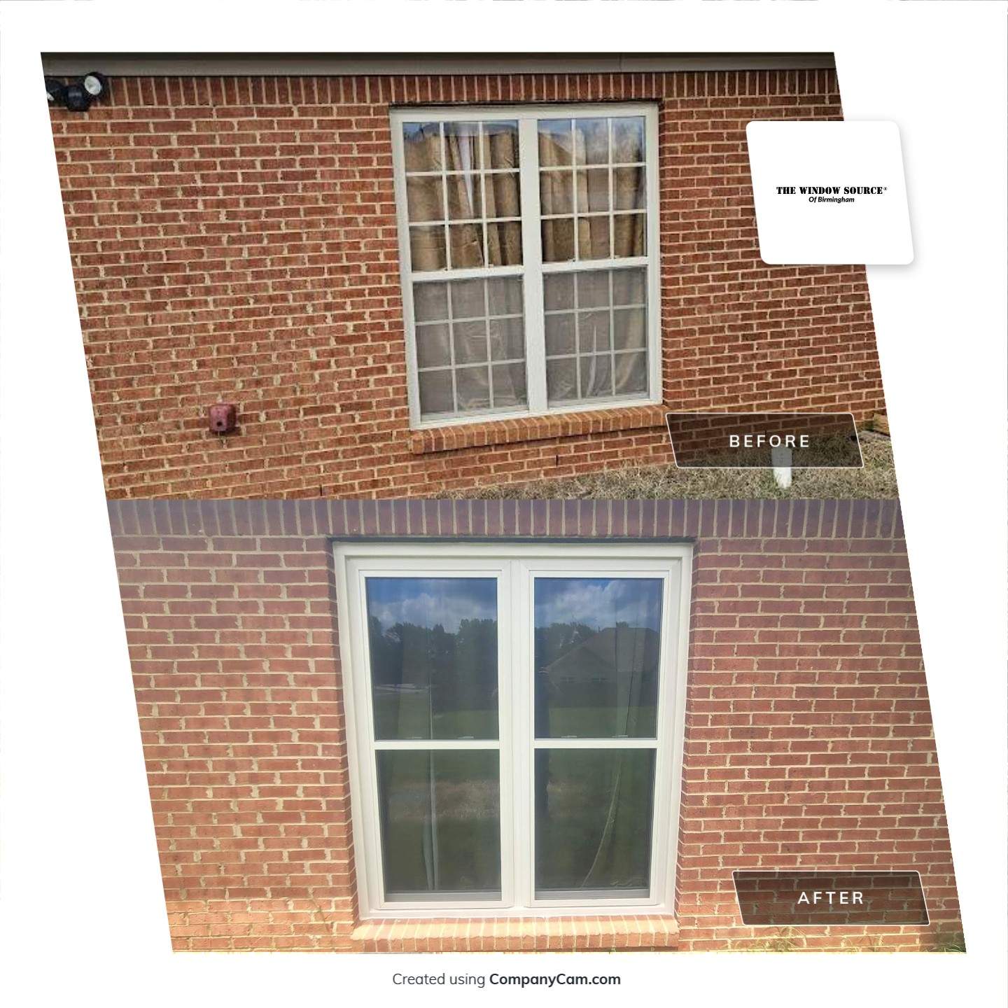 Beige exterior, White interior, Picture Window, Shaped windows, Colonial GBG, Double Hung, Brick Home, Replacement Windows