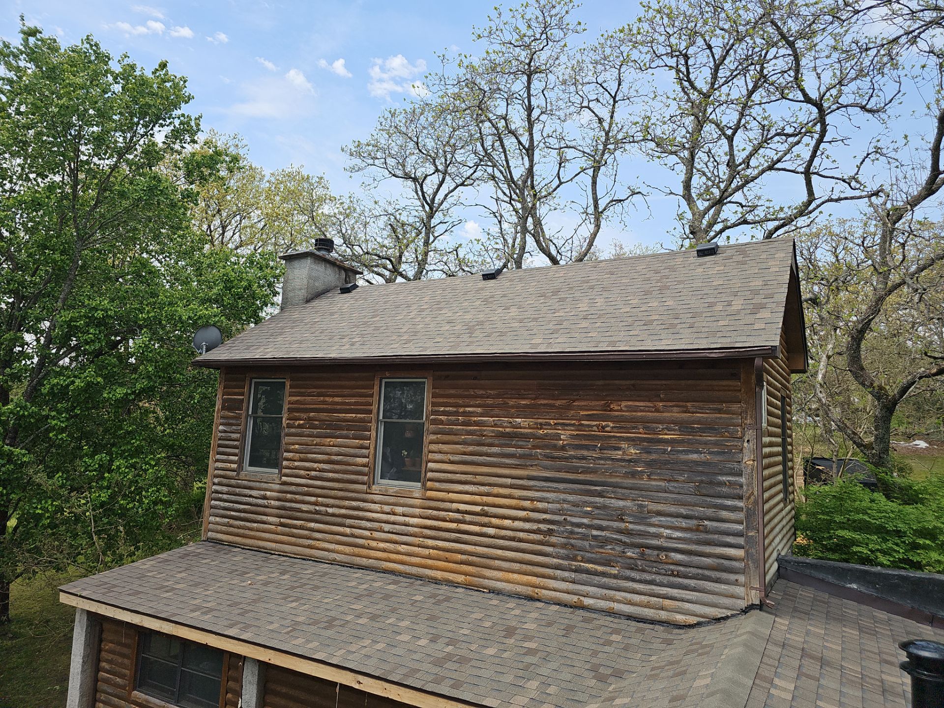 5" Seamless Aluminum Gutters & 3"x4" Aluminum Gutter Downspouts, Atlas Pinnacle Pristine - Color Weathered Wood, Residential Gutter Project, Residential Roofing Installation