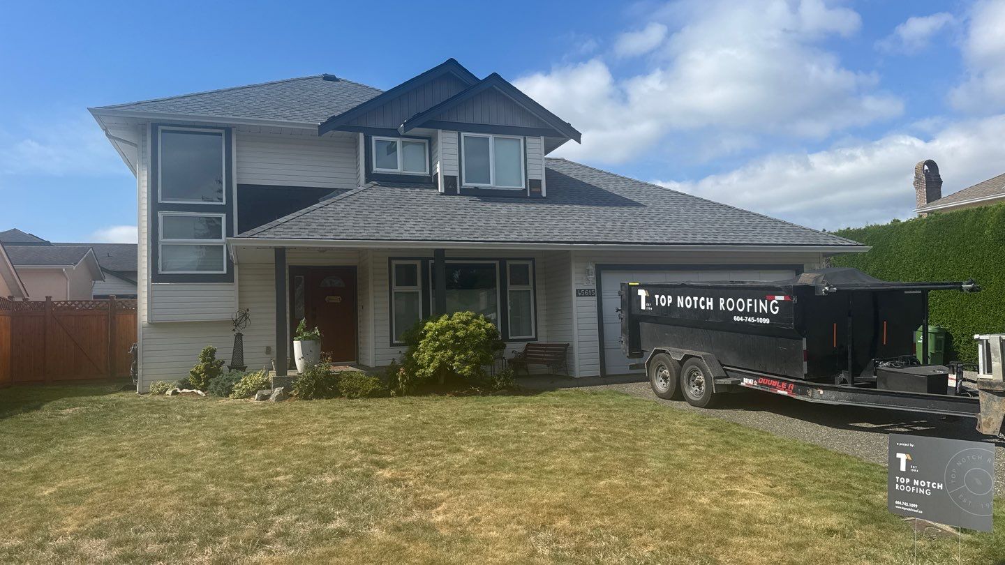 GAF Weatherblocker Starter Strip, GAF Timberline HDZ Pewter Grey, GAF Timbertex Cap, GAF Feltbuster underlayment, GAF RT65 Vents, Residential Reroof Shingle