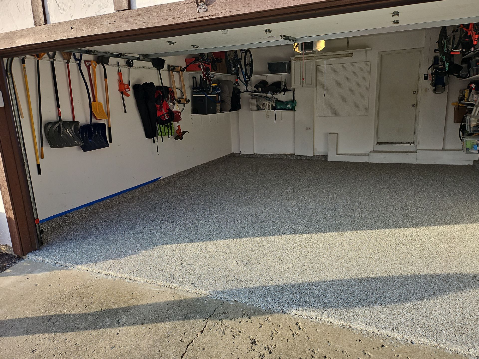 TruShield Polyurea, TruShield Polyaspartic, Domino Flake, Garage Floor Coating