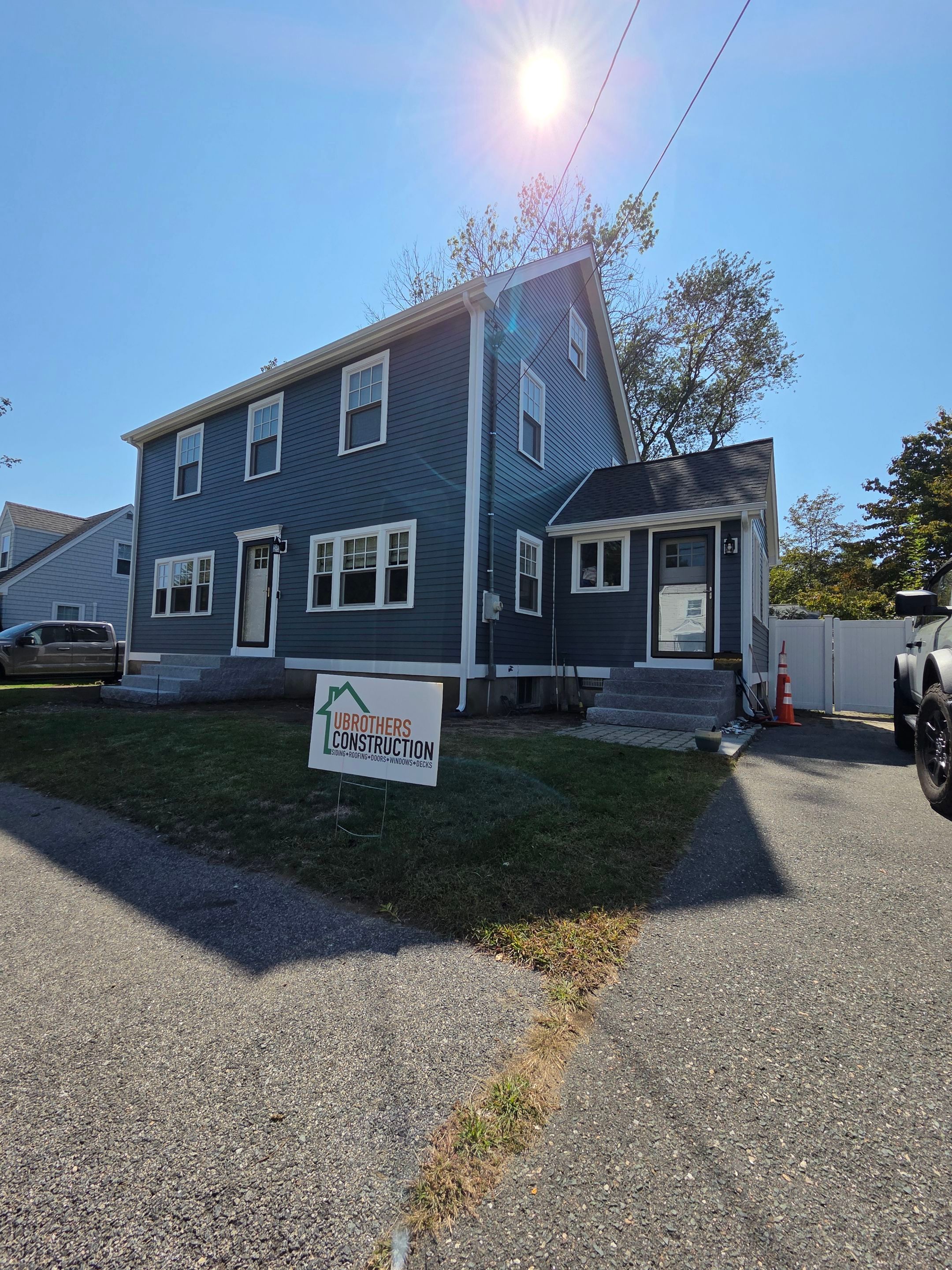Project Type: Full strip installation with complete removal of existing wood siding layer Siding: James Hardie Fiber Cement Clapboards (4" or 5" exposure) - installed on entire house exterior Roofing: Complete roof replacement project Windows: 21 Marvin windows professionally installed throughout the home. Premium Trim Package - All PVC Construction: * Soffit: PVC board with integrated ventilation strip for superior airflow * Fascia: Solid PVC board for lasting durability * Windows, Doors & Garage Doors: 5/4" x 4" PVC board trim (square edge) for clean, uniform appearance * Corners: 5 1/2" x 20' PVC Corner Posts with nailing flange for structural integrity * Water Table: 1x8 PVC board (no raincap) for architectural detail * Gutters: New 5-inch gutter system with downspouts for optimal water management Scope: Comprehensive whole-house exterior transformation including complete roof replacement, installation of 21 premium Andersen windows, full siding tear-off with new house wrap moisture barrier, James Hardie fiber cement siding installation, complete PVC trim package throughout, and new gutter system installation. Result: A completely reimagined home exterior delivering superior energy efficiency, weather protection, and curb appeal. This total renovation combines premium Andersen windows, durable James Hardie fiber cement siding, professional roofing, and maintenance-free PVC trim for a beautiful, long-lasting exterior backed by industry-leading warranties.