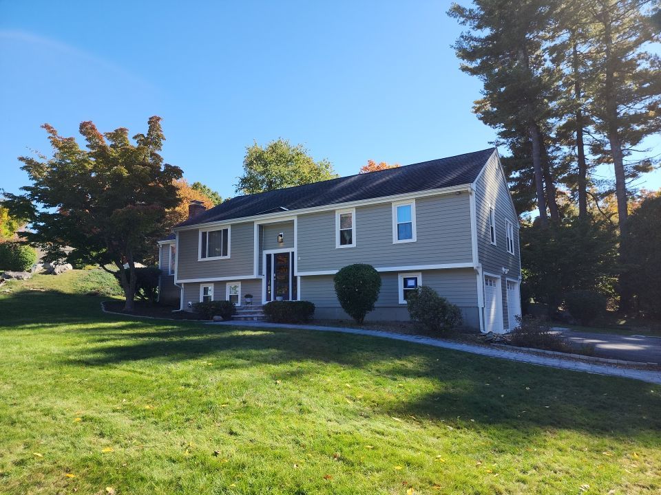 Project Type: Full strip installation with complete removal of existing wood siding Siding: James Hardie Clapboards in Monterey Taupe (6.25" exposure, Cedar Mill texture) - installed on entire house exterior Trim & Finishing Details: Soffit: Vinyl Invisivent soffit for optimal attic ventilation Fascia: Aluminum wrap for low-maintenance protection Windows, Doors & Garage Doors: 5/4" x 4" PVC board trim (square edge) for clean, modern lines Corners: 5 1/2" x 20' PVC Corner Posts with nailing flange for professional finish Water Table: PVC board installed on select areas for architectural detail Gutters: Existing gutter system retained Scope: Complete whole-house exterior transformation featuring full tear-off of old wood siding, installation of new house wrap moisture barrier, and premium James Hardie fiber cement siding with coordinating PVC trim package. Result: A stunning, durable exterior combining the authentic look of cedar wood grain with James Hardie's superior weather resistance, fire protection, and 30-year non-prorated warranty. Low-maintenance beauty designed to last decades.