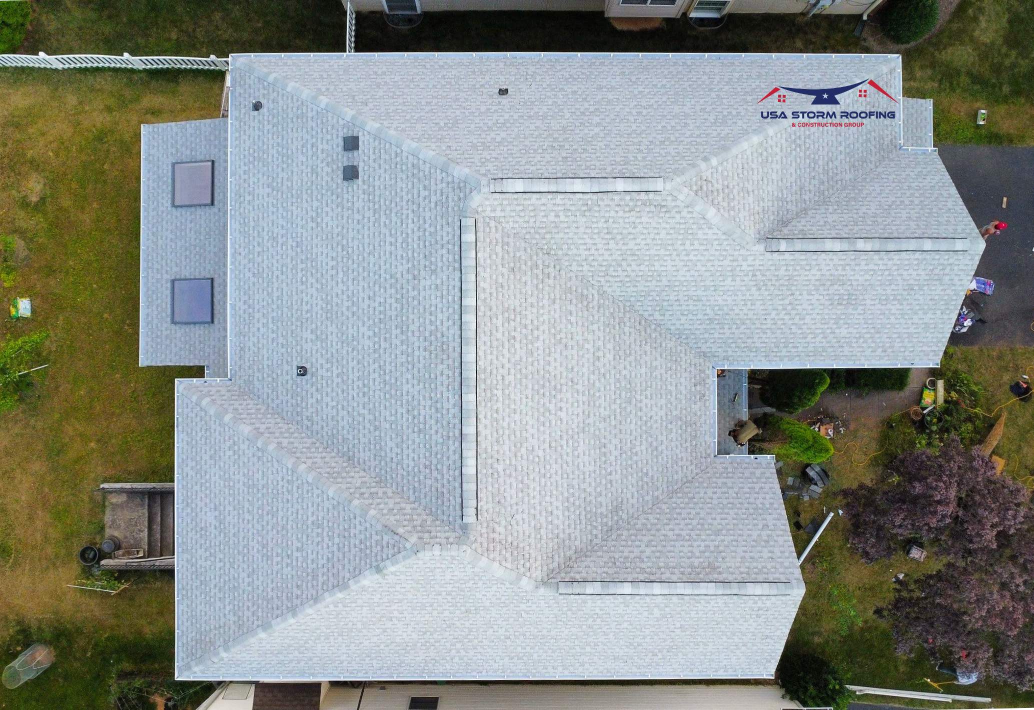 Full roof replacement in Clarksburg, GAF with Fox Hollow Gray shingles, along with new gutters for better protection and curb appeal.