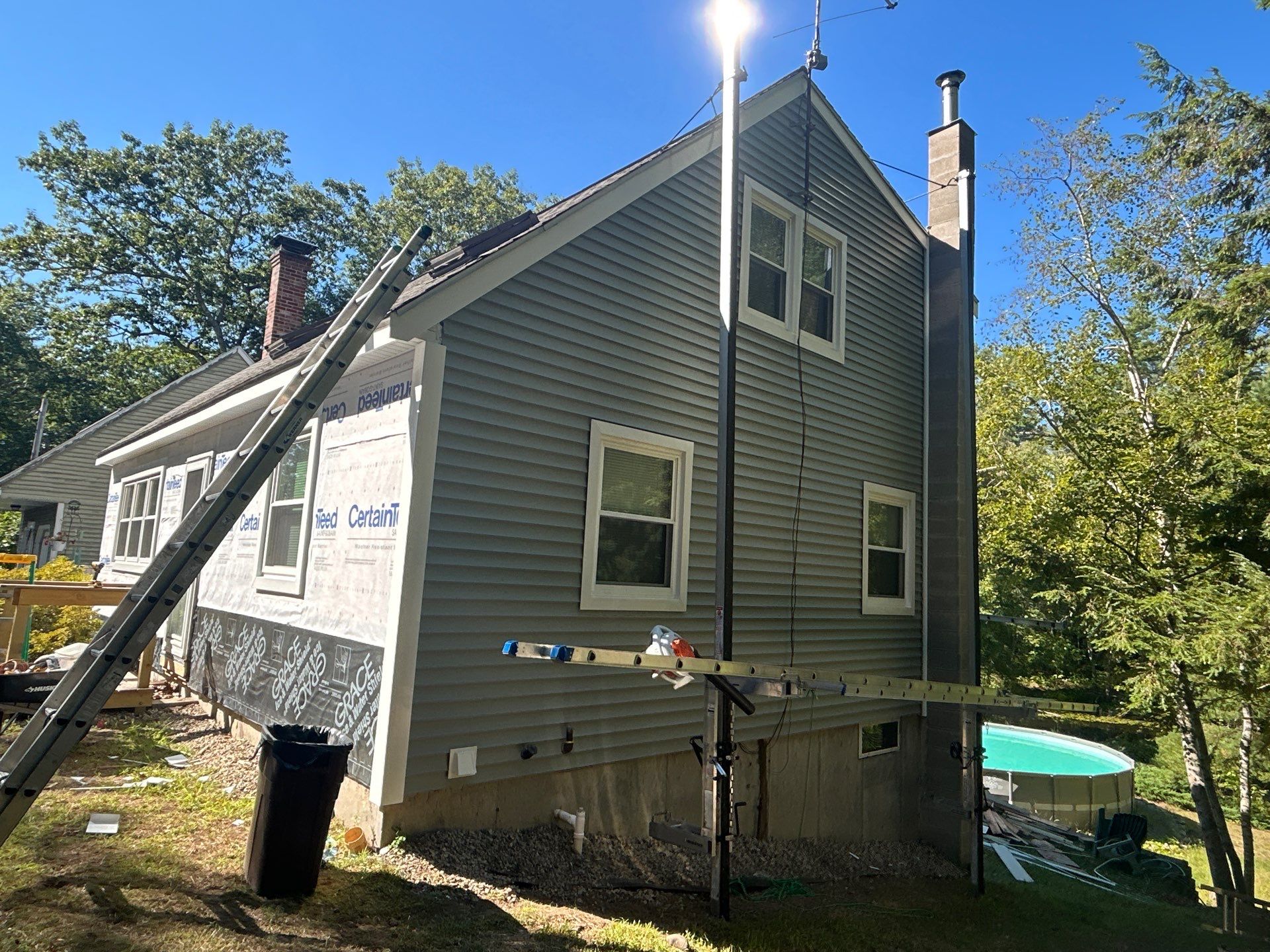 WG Construction completed a full siding replacement on this home in Raymond. The project featured CertainTeed MainStreet D4 vinyl siding and new aluminum trim, giving the home a clean updated look while improving long-term protection from the elements.