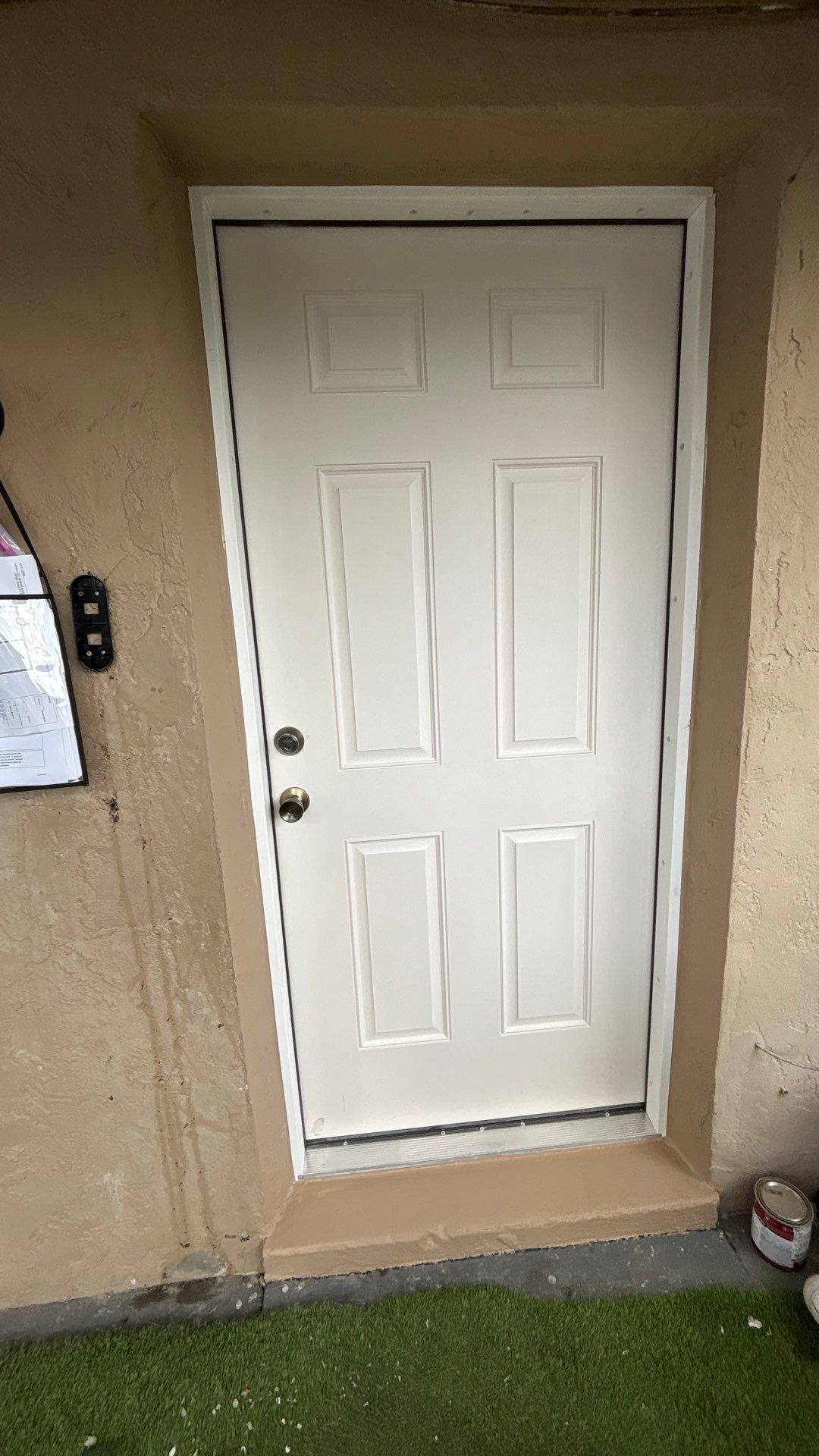 We completed a comprehensive exterior upgrade for this residence in Lehigh Acres, focusing on the installation of new windows and doors. Our team prepared the rough openings using pressure-treated wooden studs and integrated flashing tape to ensure a weather-tight seal. We installed various units, including white-framed sliding windows, single-hung windows, and six-panel exterior doors. To provide lasting durability, we utilized ProtecWrap and Quik-Wrap flashing along with professional-grade white sealant at all transition points. We also installed stone sills and ensured every frame was properly leveled for optimal functionality. This project significantly improved the home's energy efficiency and aesthetic appeal with high-quality, secure installations.