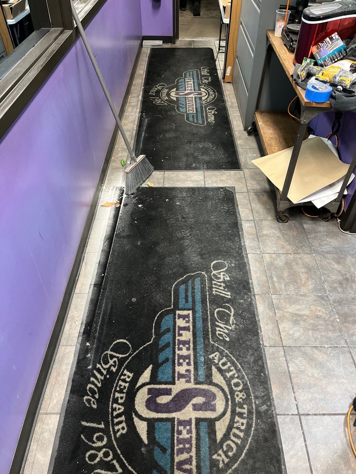 Initial Post Construction cleaning office space walkway.