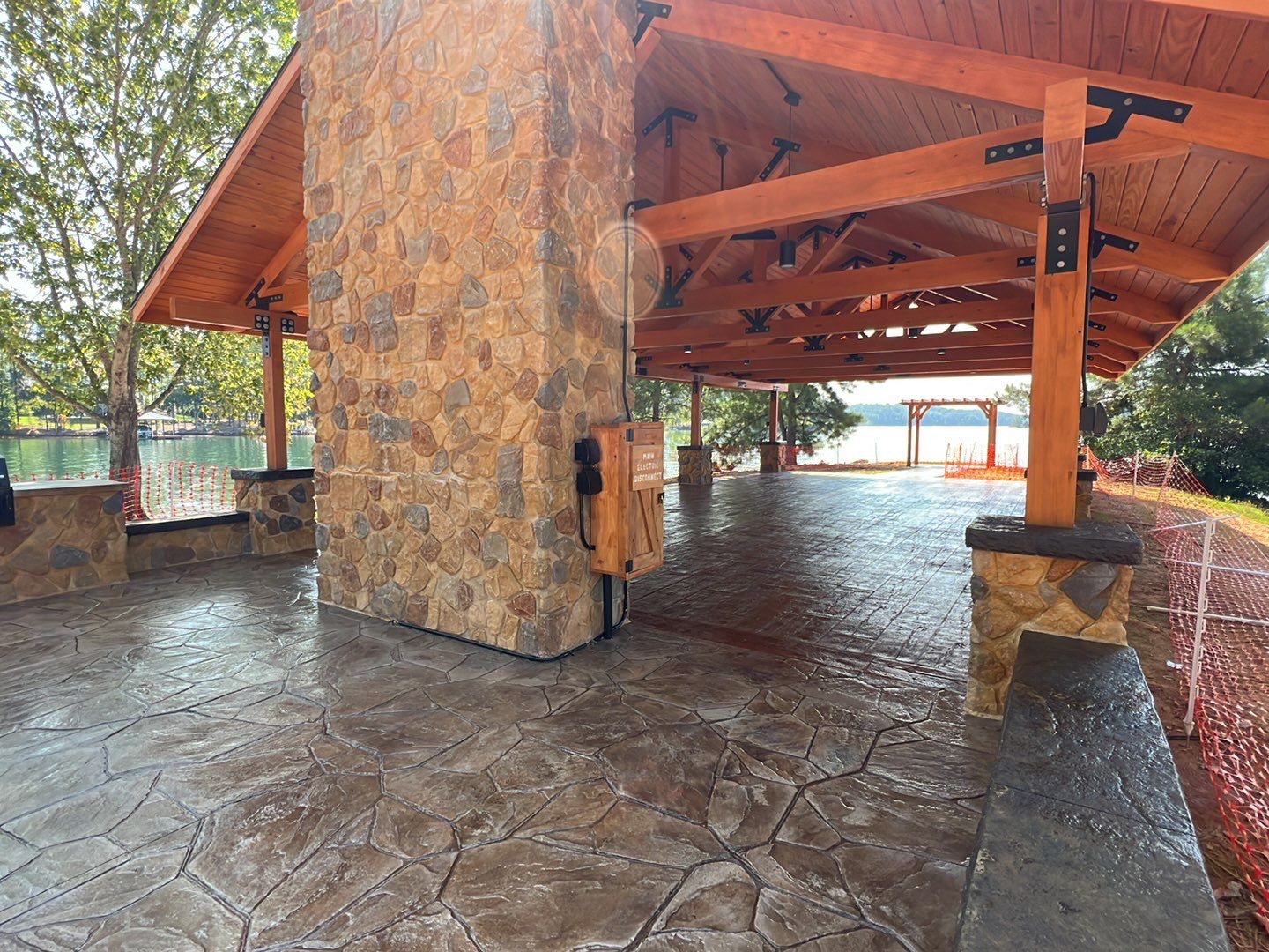 Stamped concrete pavilion slab for High Falls Park. Also installed GFRC panels over an existing brick fireplace, installed seat walls, column bases and an outdoor kitchen using GFRC panels.