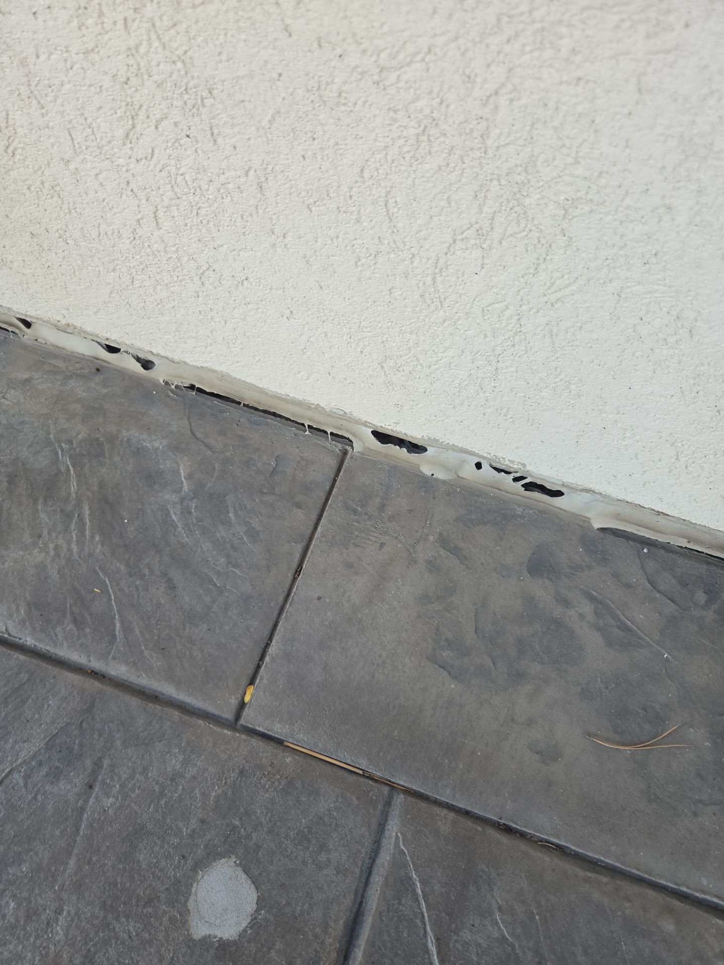 Re-seal the upper deck - Trim board. Re-seal the gap along the concrete and the stucco. Install a 3/4" foam strip to fill the gap and then install a concrete crack filler sealant. Re-seal the cracks in the header board, with clear silicone. Seal the cut in the stucco, below the header board with the closet exterior caulking, to match the existing stucco.