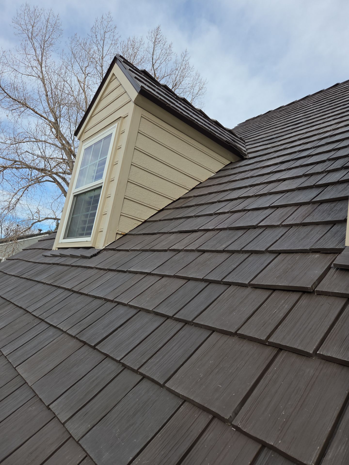 Removed snow guards. Removed Shake Shingles. Installed I&W Self Adhering Underlayment. Installed DaVinci 12" Starter Course. Installed New DaVinci Select Shake - Color "Mountain Blend". Installed New DaVinci Hip and Ridge. reinstall snow guards.