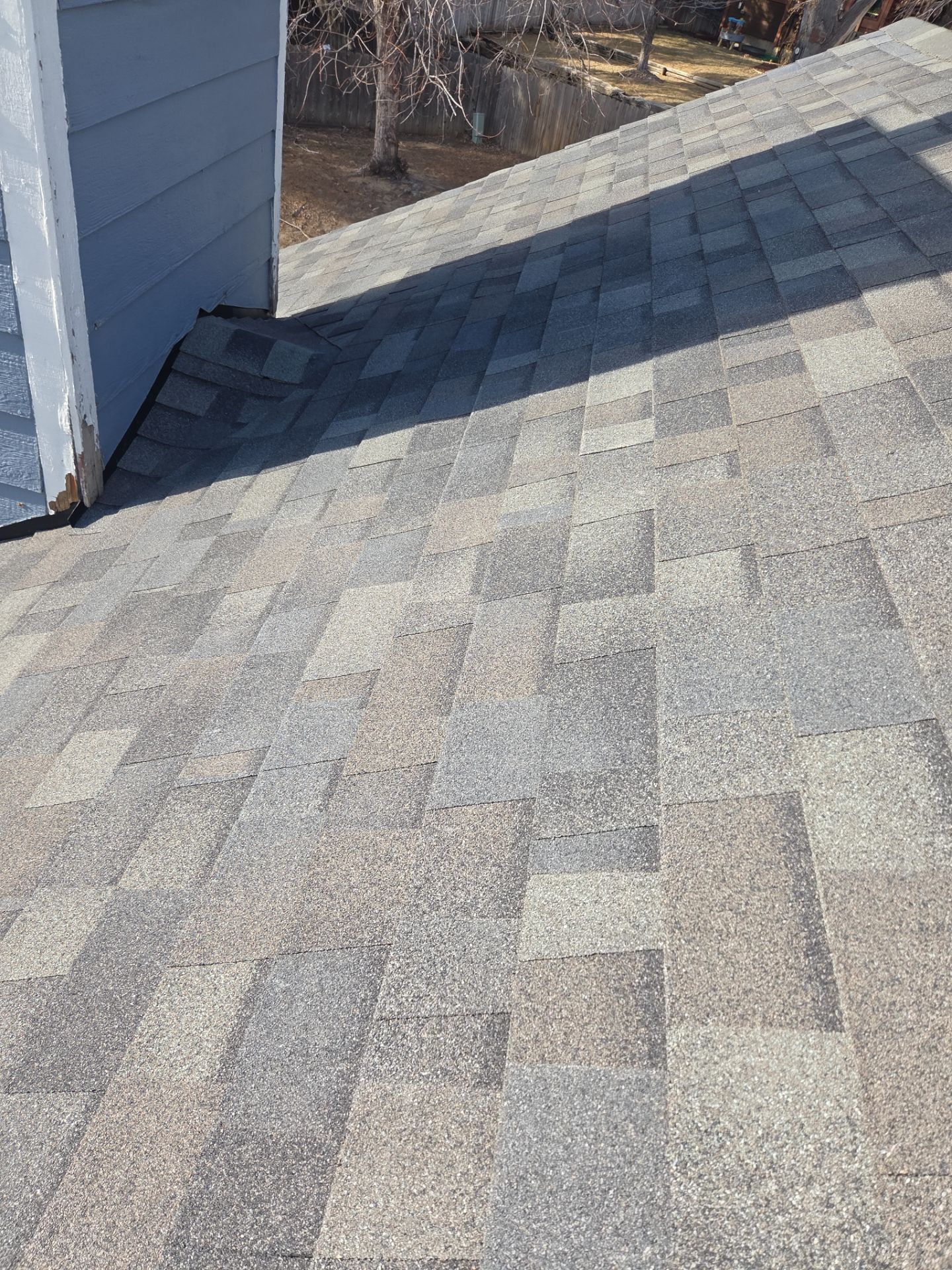 Removed 1 Layer of Asphalt Shingles. Installed Plywood Sheathing. Installed Drip Edge/ Gutter Apron. Installed Rake Edge. Installed Ice & Water Shield. Installed Synthetic Underlayment. Installed Pipe Jack Flashing. Installed New Step Flashing 8X8 Pre-bent. Re-Flash Existing 1-Skylight/ 2-Chimneys. Installed Shingle Starter Course. Installed new shingles.